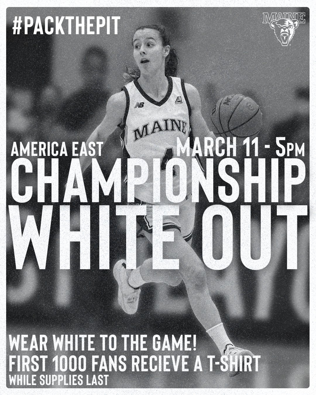 Maine Women S Basketball On Twitter White Out Alert Blackbearnation Help Us White Out The Pit For Friday S Aehoops Playoff Game Wear White First 1 000 Fans Will Receive A Free